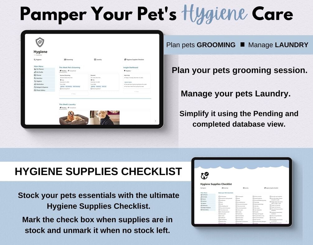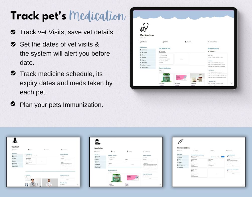 Get your pets well-being on track, track pets vet visit, meds, hygiene and many more with our Pet's Planner - a Notion Template to make your pets life organised.